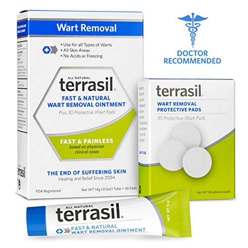 Special-offer kit comes with 30 protective wart pads!A Safe and Gentle Wart Removal That is Totally Pain-FreeTerrasil Wart Removal Ointment removes warts with no freezing or burning, powerful active ingredients, our patented Activated Minerals® technology, all-natural moisturizers and essential oils that provide additional benefits to any type of skin. Organic beeswax provides Vitamin A, which helps with the development of new, healthier skin. This powerful FDA-registered remedy combines the latest science with the finest organic and natural ingredients for superior results.Yes, Terrasil Really Works• Provides pain-free removal of warts